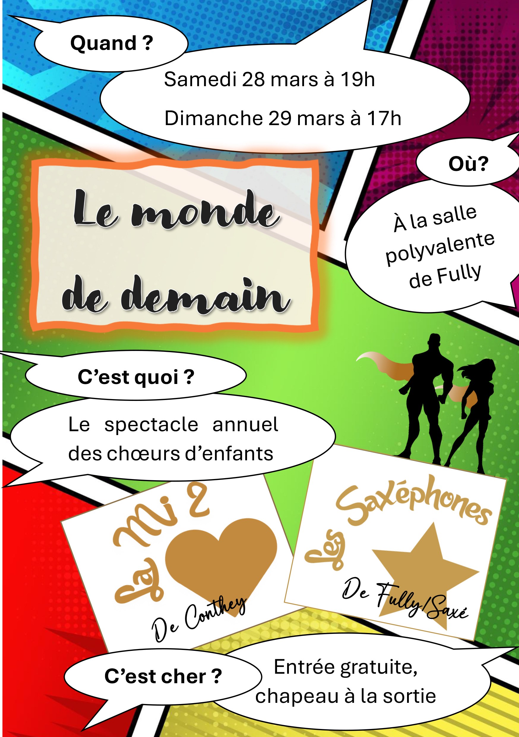 Soyez les bienvenus samedi 28 mars (19h) ou dimanche 29 mars (17h) à la salle polyvalente de Fully !